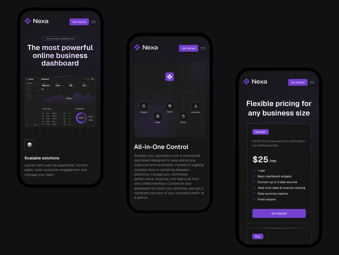 Our objective was to translate Nexa’s complex data capabilities into a clear, compelling narrative through visual hierarchy, concise messaging, and purposeful layout. We focused on crafting a landing page that highlights key features, real-time insights, and benefits at a glance supported by modern UI elements, strong CTAs, and responsive design to ensure a seamless experience across all devices.